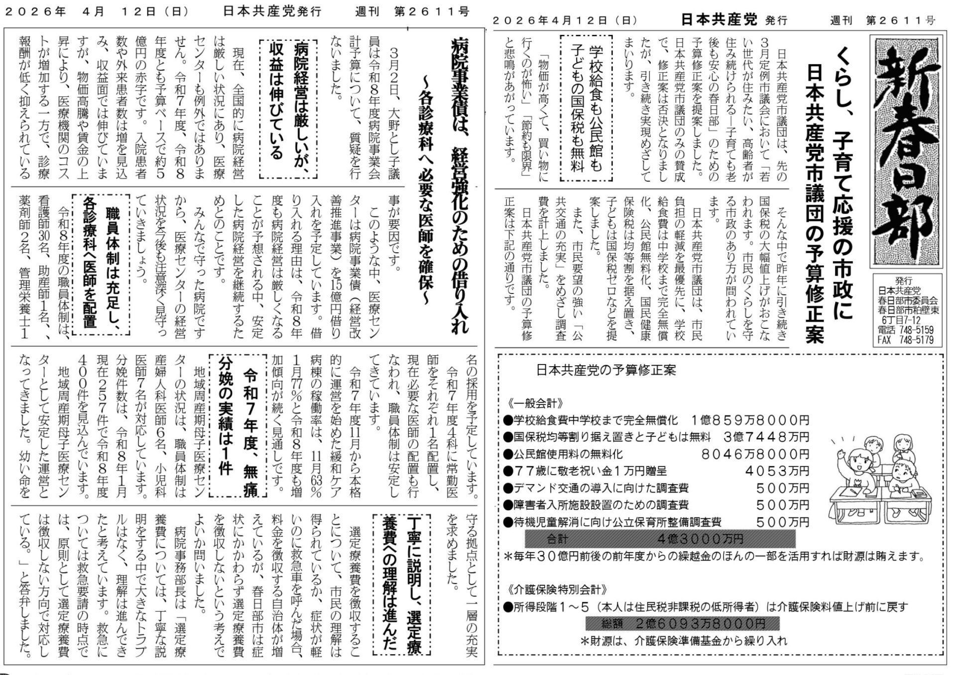 ● 新春日部4/12№2611 共産党予算修正案実現めざして頑張る(2026年04月09日)